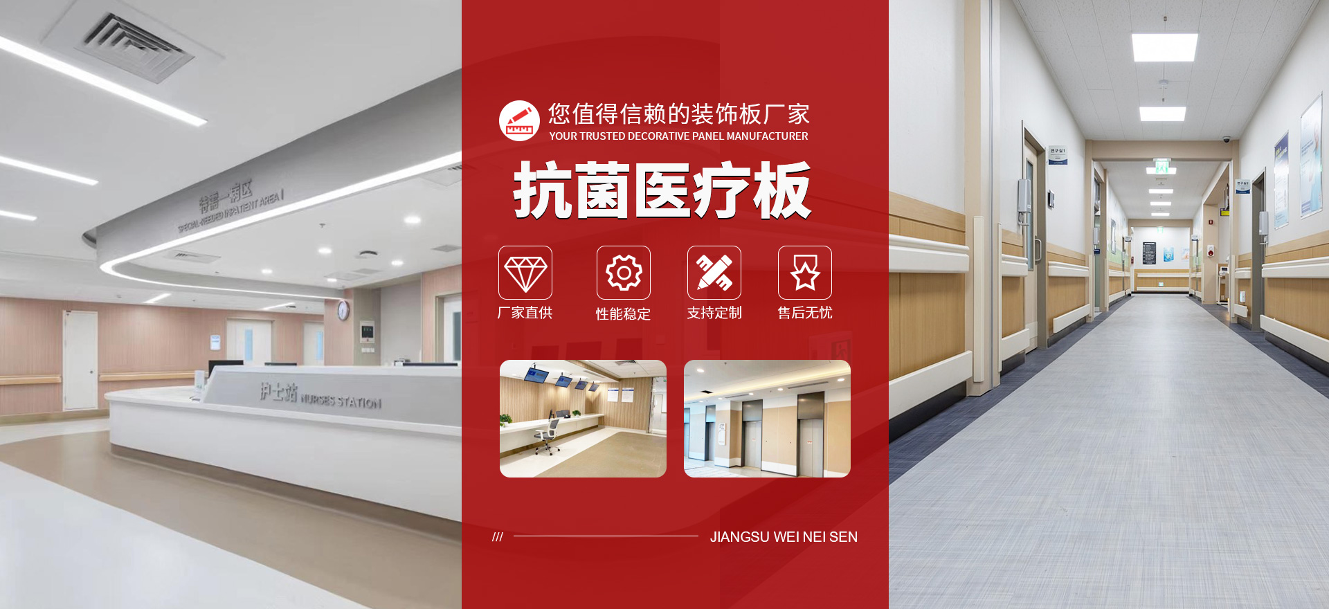 抗菌醫療板有較強的抑菌作用,細菌在表面無法像在其他物體表面一樣快速繁殖,結合特殊的抗菌殺菌材料能有效的殺滅多種有害細菌及微生物。耐沖擊、耐刮痕